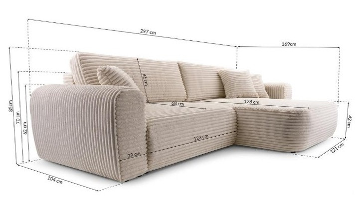 Jobbos kivitel: ( ha szemben állunk a sarokgarnitúrával jobb oldalt van az ágyneműtartós ottomán rész)